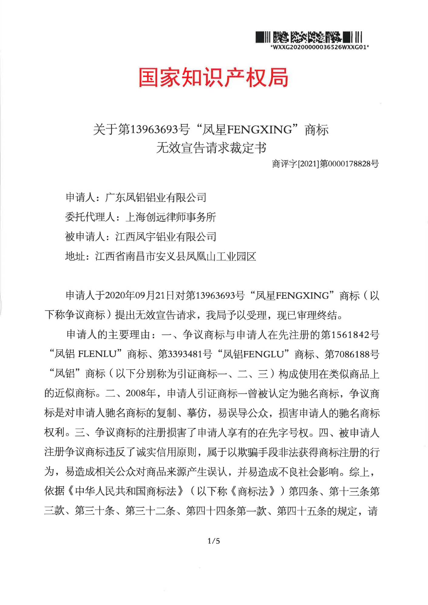 朔州辉知队 | 国家知识产权局:“凤星”商标无效